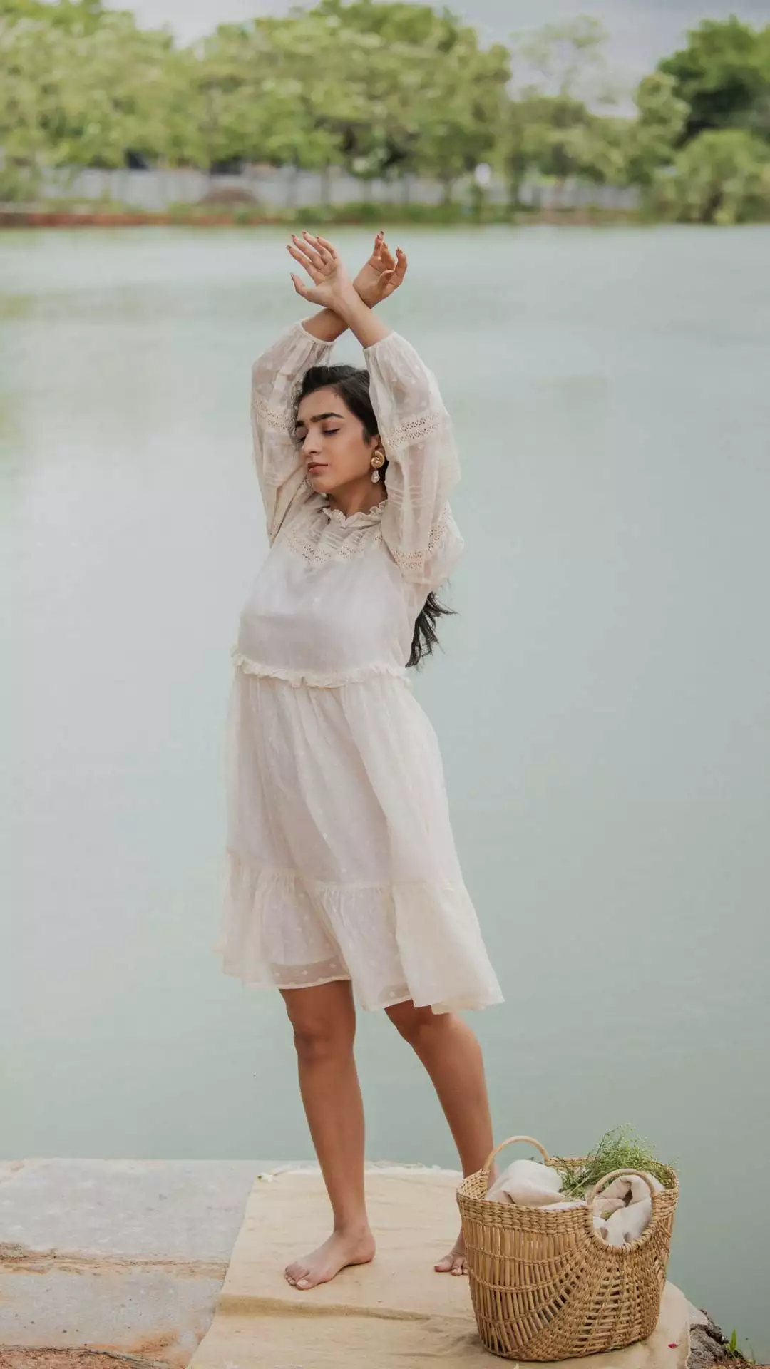 Embroidered Chanderi Long Dress with Slit Sleeves