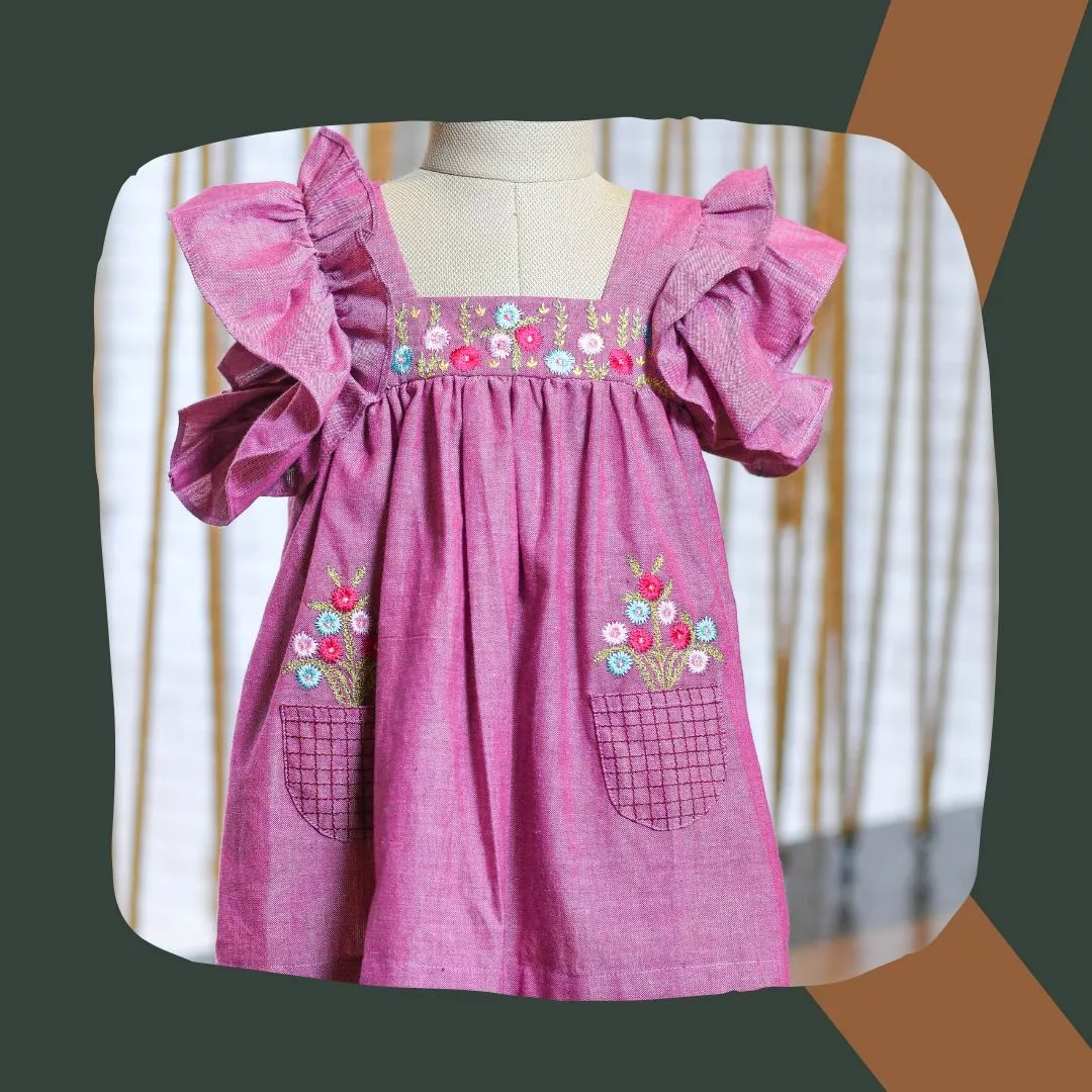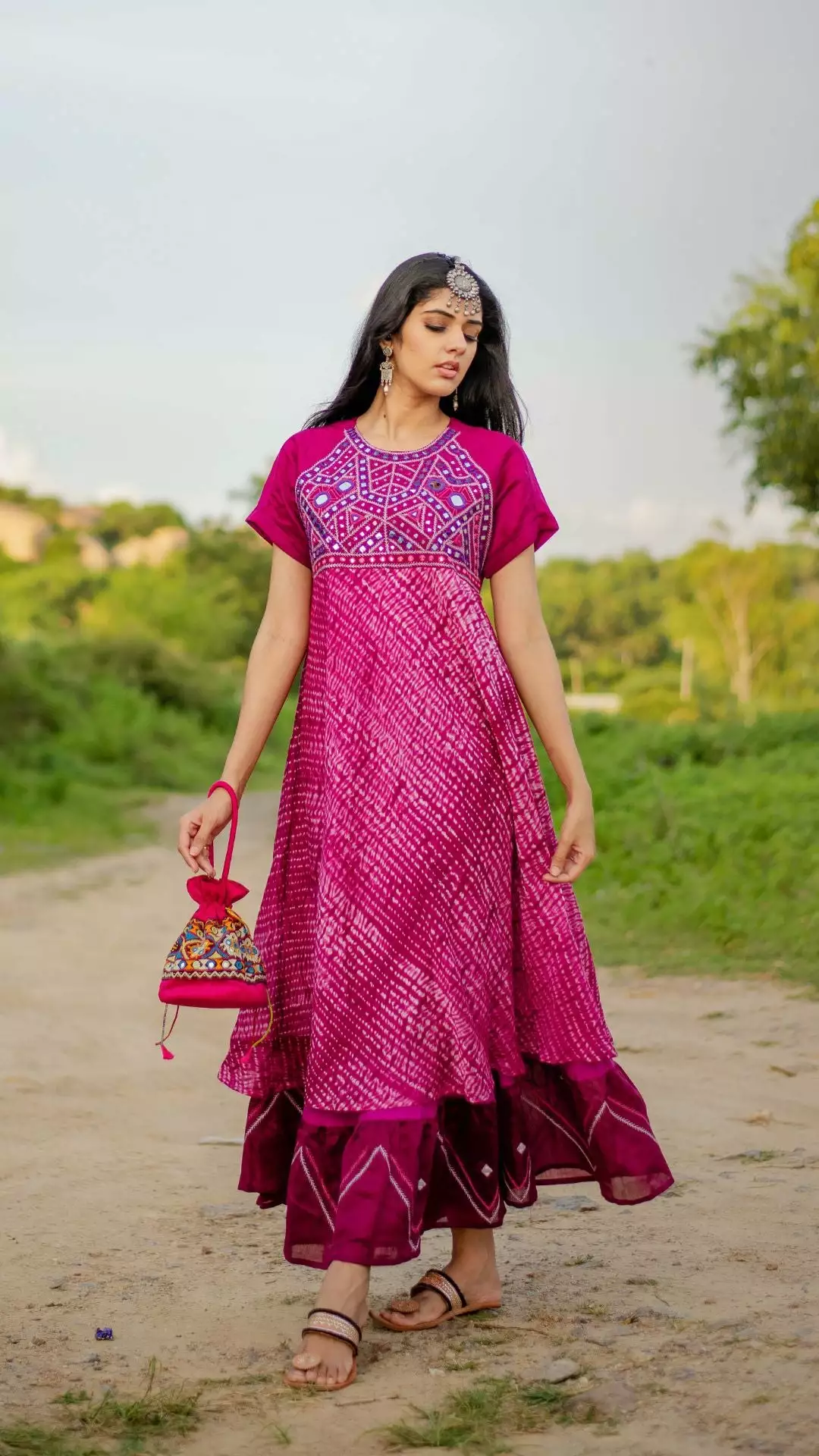 Embroidered Chanderi Long Dress with Slit Sleeves
